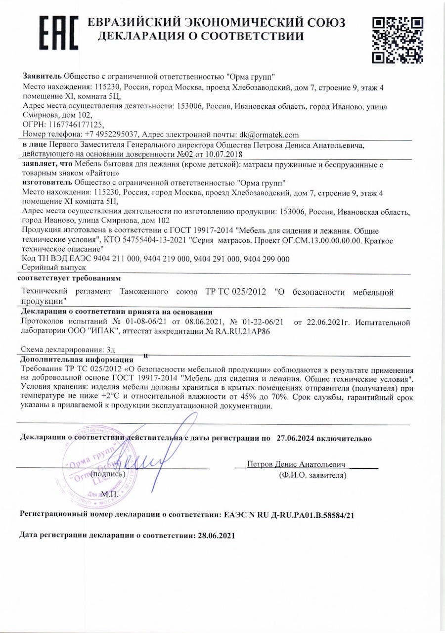 Гарантия распространяется на матрасы, кровати, основания и аксессуары представленные на нашем сайте.